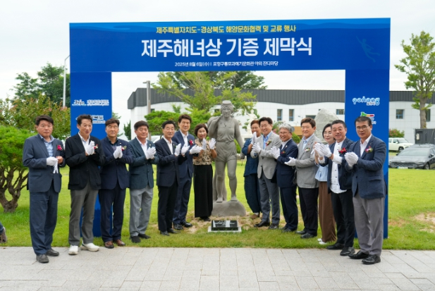 제주특별자치도는 광복 80주년을 기념해 기획한 ‘제주–경북 해양문화협력 및 교류행사’의 첫 일정으로, 6일 포항시 구룡포과메기문화관에서 제주해녀상 기증 제막식과 제주해녀 특별전시 개막행사를 성황리에 개최했다고 밝혔다.