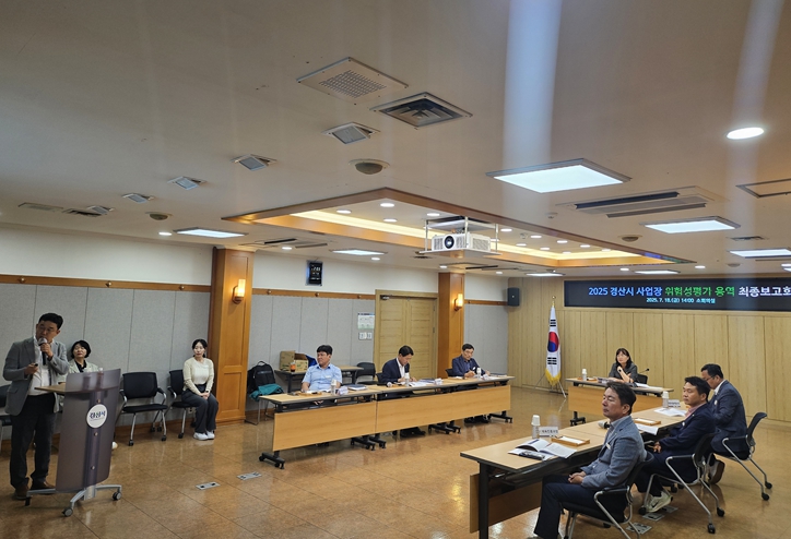 [뉴스스텝] 경산시는 18일 소회의실에서 '2025 경산시 사업장 위험성평가 용역' 최종보고회를 개최했다. 이날 보고회에는 부시장을 비롯해 건설안전국장, 안전총괄과장, 회계과장, 체육진흥과장, 농정유통과장, 환경시설사업소장 등 10여 명의 관계부서장이 참석해 용역 추진 경과와 주요 결과를 공유했다.