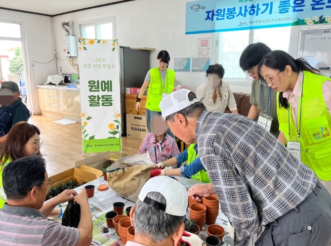 [뉴스스텝] 제주특별자치도사회서비스원은 지난 9월 30일, 성산읍 신풍리경로당에서 어르신들과 함께하는 원예 자원봉사 활동을 실시했다.