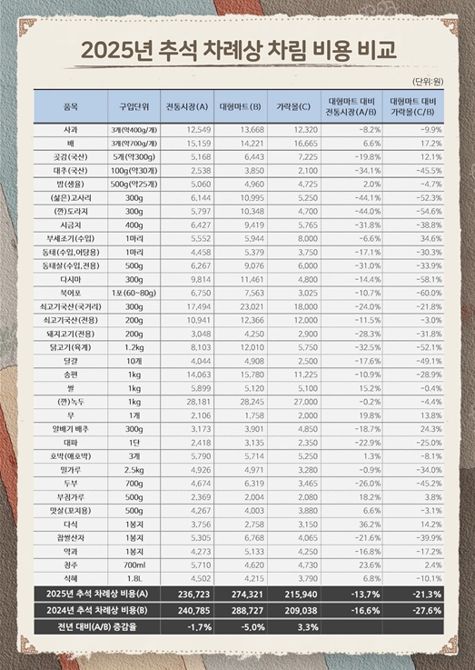 ▲ 2025년 추석 차례상 비용 조사 결과 |