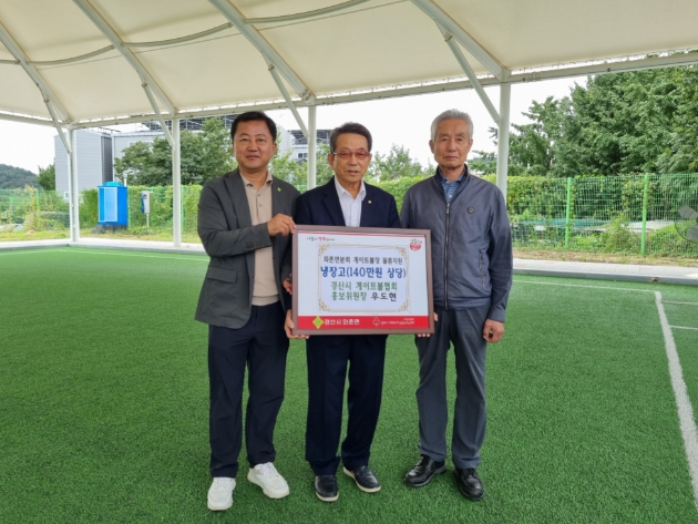 [뉴스스텝] 경산시 게이트볼협회 우도현 홍보위원장은 와촌면 분회경로당에 140만 원 상당의 냉장고를 기증하며, 어르신들의 건강한 여가 생활을 위한 따뜻한 나눔을 실천했다.