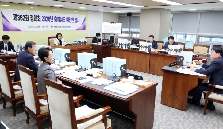 [뉴스스텝] 충남도의회 농수산해양위원회는 2일 제362회 정례회 2차 회의에서 충남도 농축산국 소관 2025년도 제3회 추가경정예산안, 2026년 본예산안, 조례 제‧개정안, 동의안 등을 심사했다.