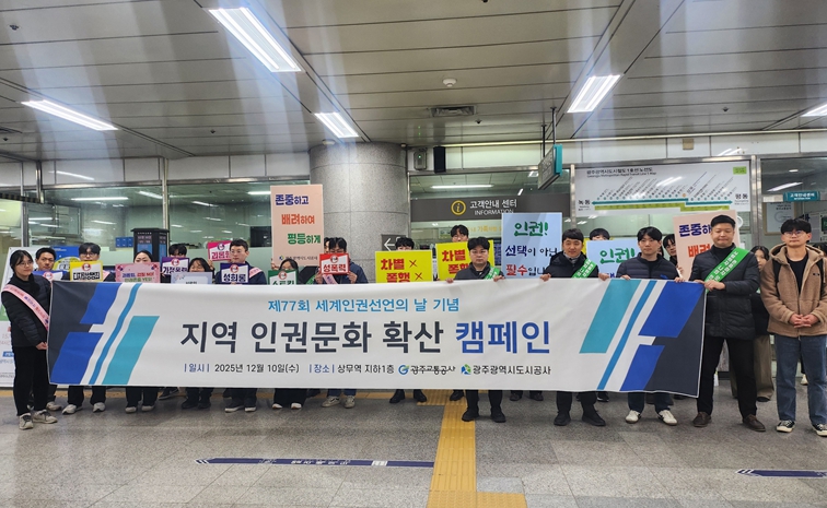 [뉴스스텝] 광주도시공사(사장 김승남)는 지난 10일 서구 상무역에서 광주교통공사와 합동으로 인권문화 존중 캠페인을 펼쳤다고 밝혔다.