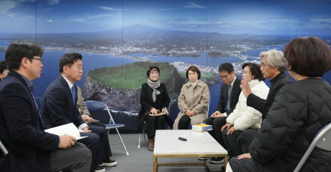 [뉴스스텝] 제주특별자치도는 제주평화인권헌장 제정과 관련해 2일(화) 도청 소통회의실에서 제주도민연대(대표 이향) 등 단체와 면담을 가졌다.