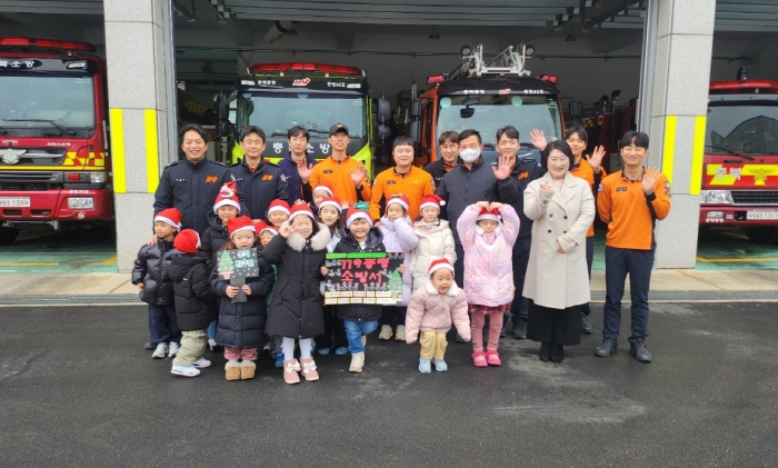 이번 방문은 추운 겨울철에도 밤낮없이 군민의 생명과 안전을 지키는 소방관들의 노고에 감사를 전하고, 아이들에게는 나눔과 감사의 의미를 자연스럽게 배우게 하기 위한 인성 교육의 일환으로 마련됐다.
