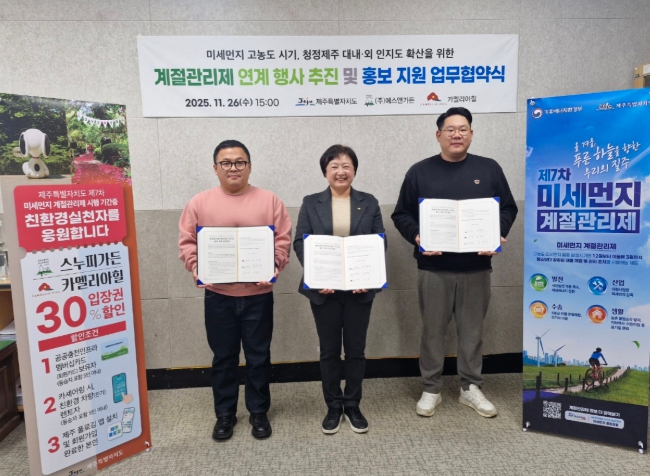 제주도는 26일 두 관광지와 업무협약을 맺었다. 계절관리제 인지도를 높이고 친환경 활동을 확산하고자 이번 시범사업을 기획했다. 청정 제주를 지키려는 친환경 실천자에게 실질적 혜택을 제공해 자발적 참여를 이끌어 내겠다는 취지다.