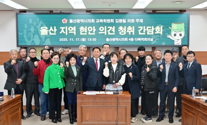 [뉴스스텝] 울산광역시의회 김동칠 의원(교육위원회, 달동ㆍ수암동)은 11월 17일 오후, 시의회 4층 다목적회의실에서 ‘지역현안 의견청취를 위한 간담회’를 열고, 현재 울산 및 남구에서 발생하는 현안에 대해 논의했다.